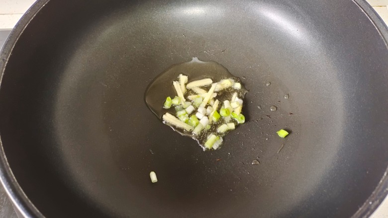5. 炒锅中加入适量花生油烧热,放入葱姜爆香