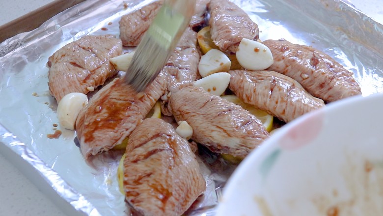 17. 把腌鸡翅用的酱汁刷在鸡翅上