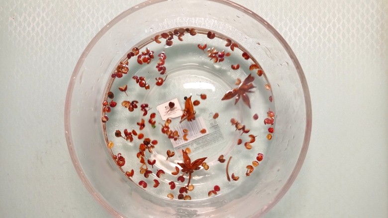 8. 静置15分钟后捞出花椒八角,泡好的花椒水备用