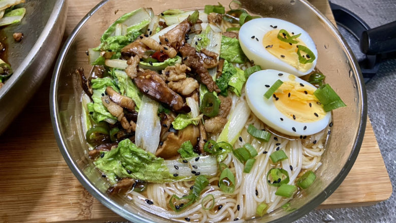 20. 码上小白菜肉丝浇头,阿晨还加了一个白煮蛋