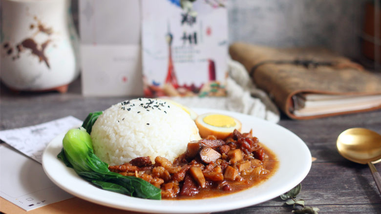 - 关于节省时间: 1、炒洋葱的时候顺便把肉丁焯下水,要记得用凉水放入肉丁再烧开。 2、焯好肉煮鸡蛋,鸡蛋煮好盖在锅里焖一会儿。 3、鸡蛋可以晚一会儿放,所以先把肉炖上再去剥鸡蛋。 一些注意事项: 1、炒洋葱碎一定要小火,不然容易糊锅哦。 2、焯肉的会后要记得凉水放肉,烧开之后用勺子撇去浮沫,水不要倒,等会儿炖肉的时候要用。 3、直接买个卤肉料包,省事。 煮出来的卤肉做成肉夹馍也是非常非常的好吃了。