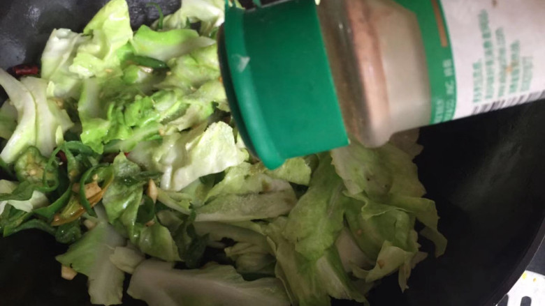 11. 下入包菜继续翻炒