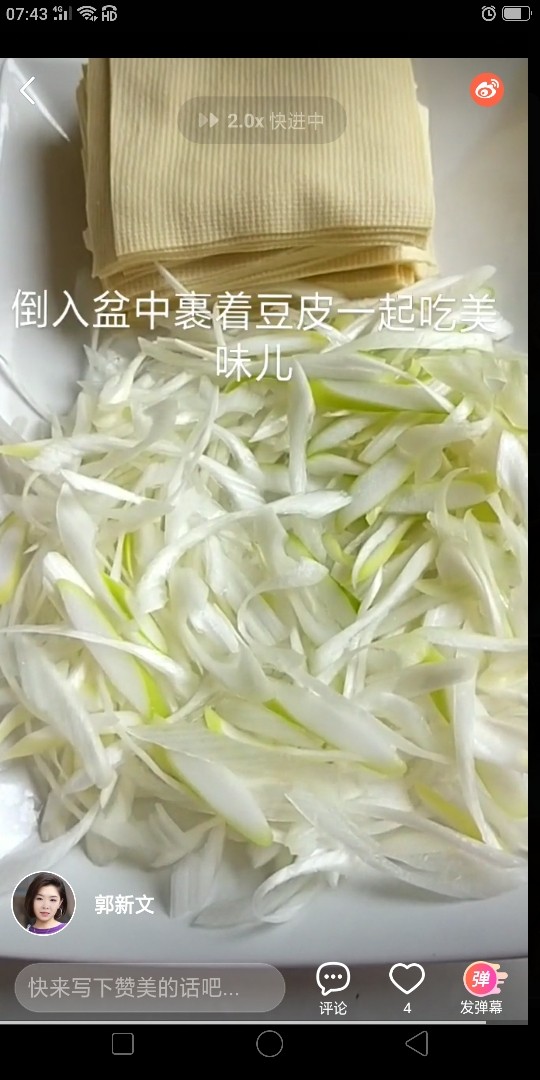 3. 大葱切丝。