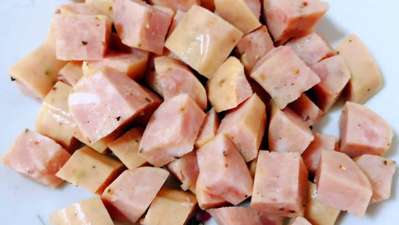 3. 黑椒香肠独有的味道特别棒切成小块备用