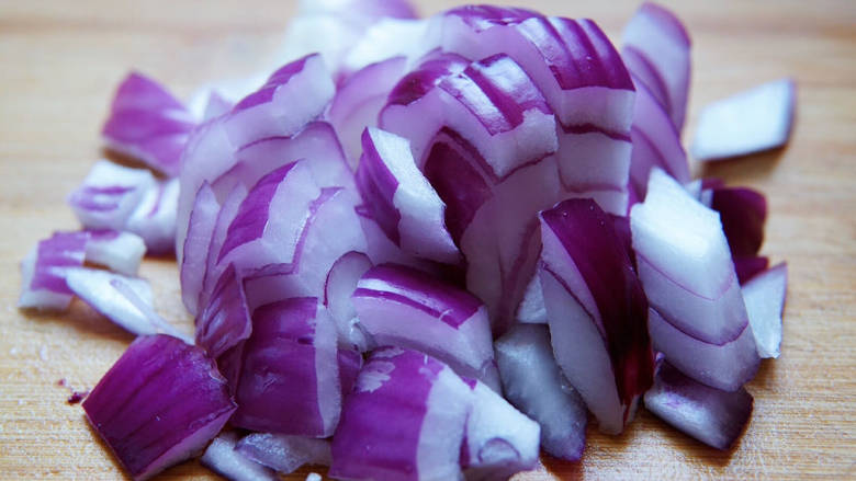 4. 洋葱头切小丁备用。