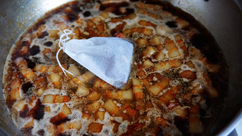 13. 加入没过肉的水,放入料包,大火煮开转小火慢炖一小时。