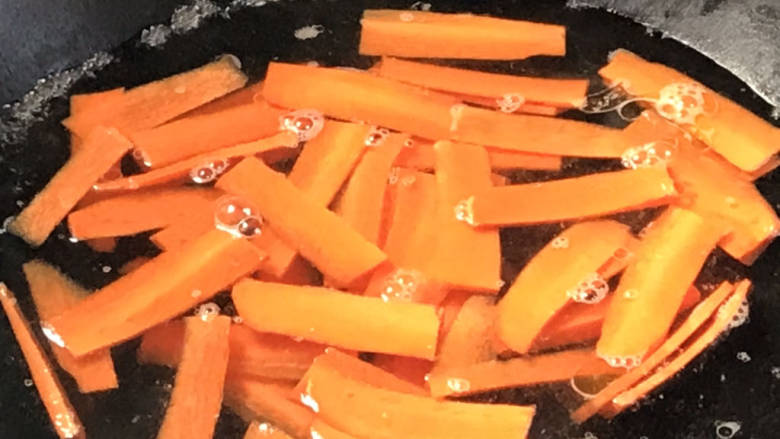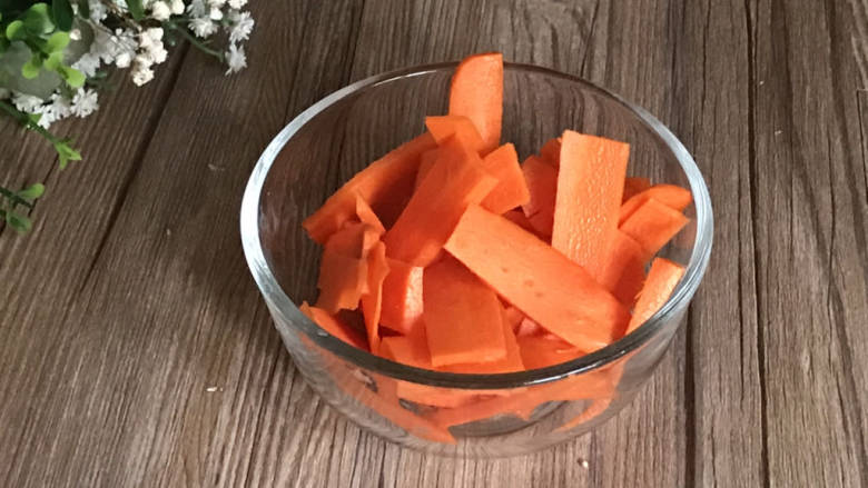 4. 胡萝卜去皮,洗净切成白菜一样的条状备用