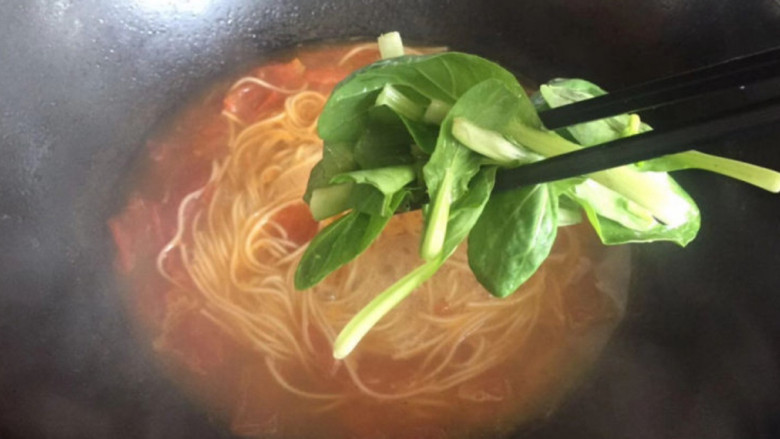 11. 面条煮熟下入小青菜