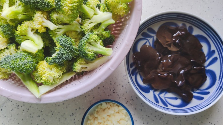 3. 泡发好的木耳去蒂,洗净,撕成小朵