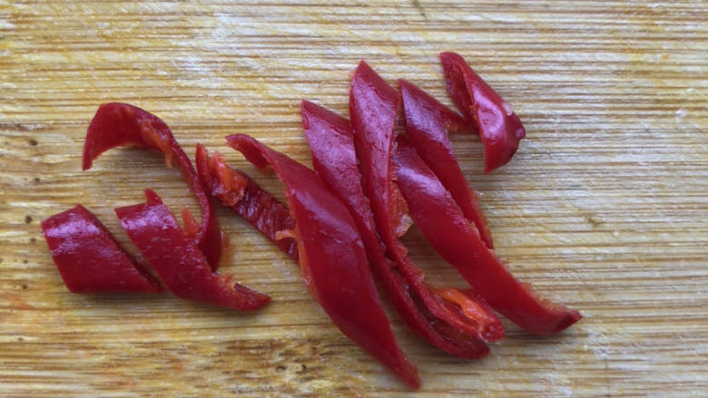 6. 尖椒去籽切丝。