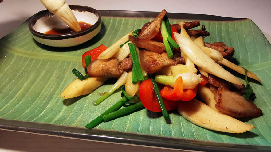 14. 五花肉沒腌过,所以用茭白化成笔,准备蘸酱
