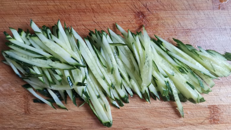 2. 黄瓜洗干净,切成细丝