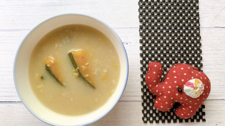 8. 粘稠的绿豆南瓜粥就做好啦,喜甜的小伙伴,可加适量糖拌匀食用。