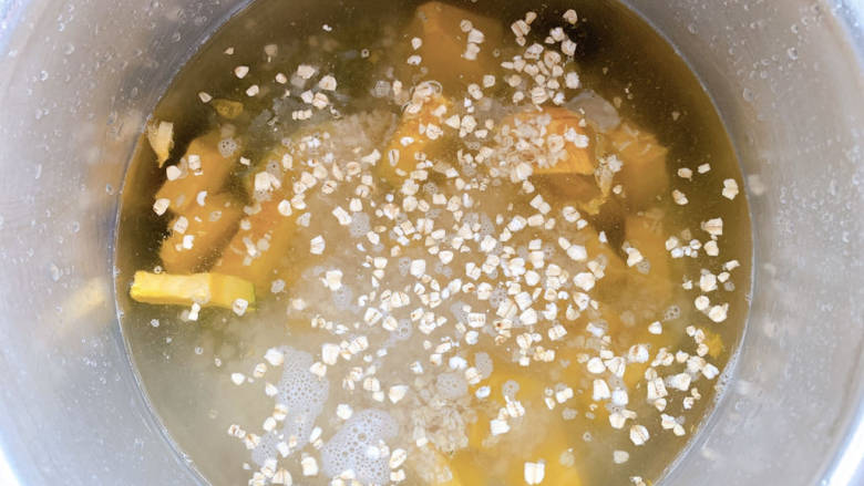 7. 再加两把燕麦,少量清水,高压锅煮15分钟。