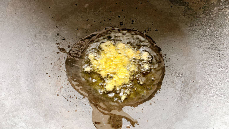 3. 锅烧热油,加入蒜沫爆炒出香味。