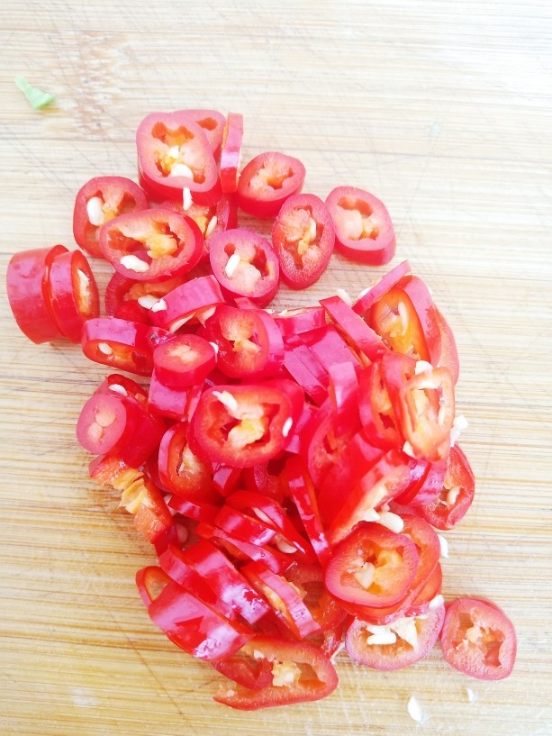 1. 一把酸豆角用水浸泡清洗后切成约5毫米的小段。