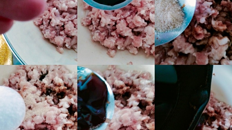4. 紫皮圆葱切成小块,搅拌到肉馅中!