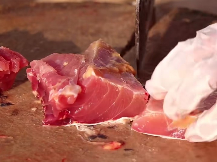 8. 剁好的鱼块放入盆中。