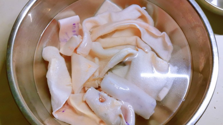3. 猪皮收拾干净,用清水浸泡半小时。