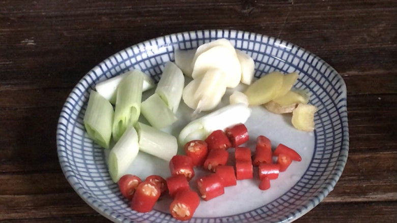 5. 备好葱姜蒜,小米辣洗净切碎备用