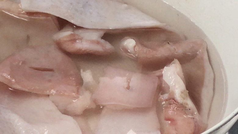 6. 煮沸的猪皮,捞出,刮干净上面的肥肉