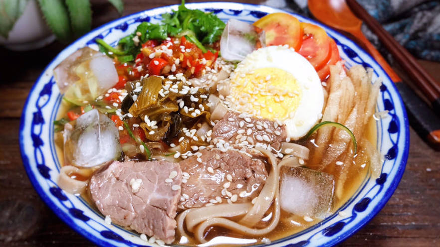 一碗冰凉酸爽的汤,配上筋道爽滑的面,吃下肚之后再也不怕炎热的夏天难熬咯