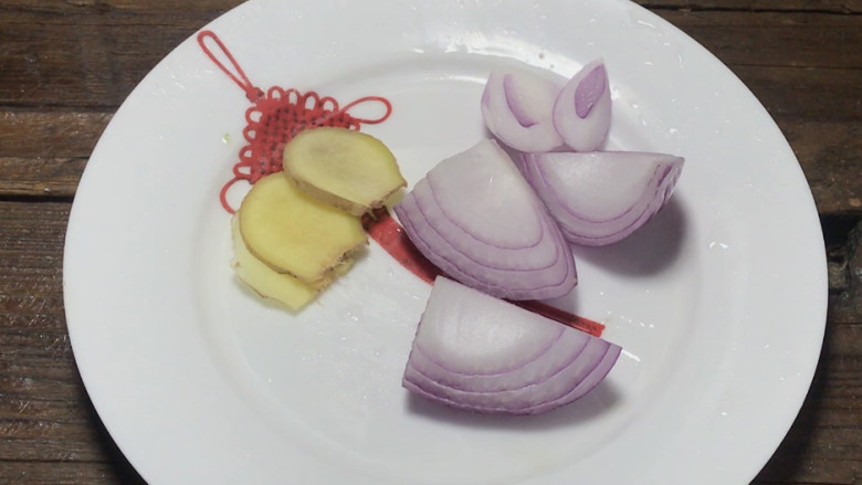 5. 放入姜片、洋葱片、盐、冰糖煮至牛肉熟烂