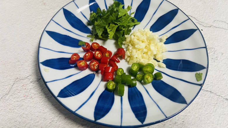 10. 放入蒜末、香菜碎、小米辣搅拌均匀
