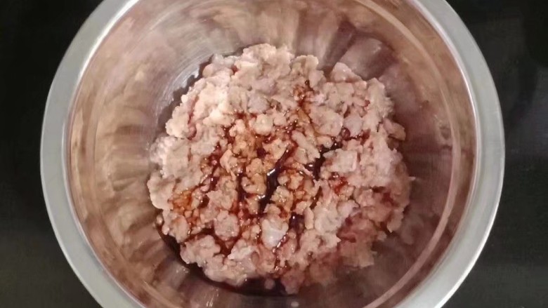 1. 将猪肉剁成肉末,装入碗中