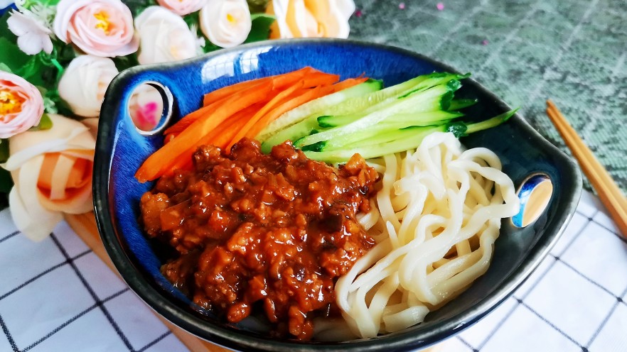 天气越来越热了,热汤面,油泼面,葱油拌面,炸酱面等都觉得越吃越热,就是想吃口凉凉的面条,才叫爽。很喜欢炸酱面的酱香浓郁,喜欢凉面的清爽,所以两者结合起来做了香菇肉酱凉拌面!喜欢的朋友也试试吧!