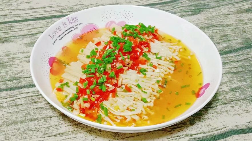 蒸出来的金针菇,口感更加鲜嫩,剁椒配上蒜香,味道更是一绝