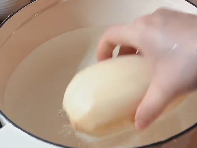 8. 苦瓜倒入锅中,加一勺盐,保持绿色,捞出过凉。