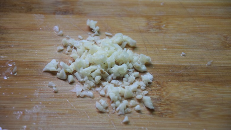 7. 起锅热油,倒入蒜末跟青红椒爆香