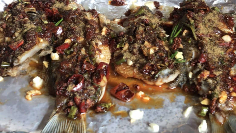 15. 浇在鲫鱼身上,同时220度预热烤箱10分钟以上