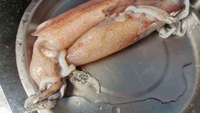 8. 水8成热,下小卷鱿鱼汆至断生,冲凉备用