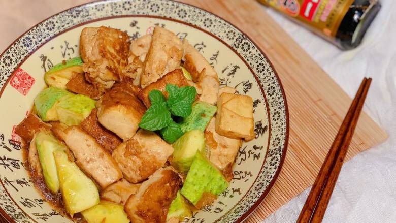 - 此菜关键在煎豆腐时不要把豆腐煎碎,口味清淡,清香,营养美味。