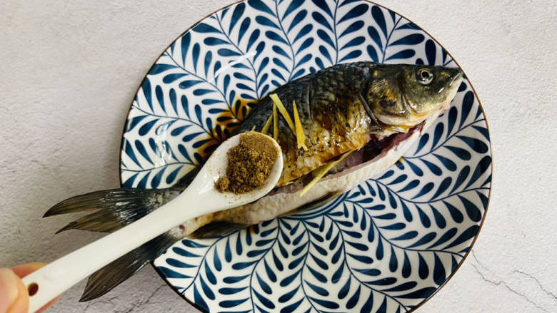 1. 鲫鱼刮鳞去腮去内脏,清洗干净。改刀,涂抹少许盐和姜丝