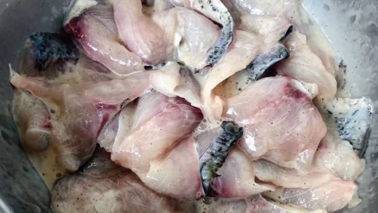 12. 煨制入味的鱼片依次下入锅中先不要翻动待鱼片微微定型后轻轻的划开