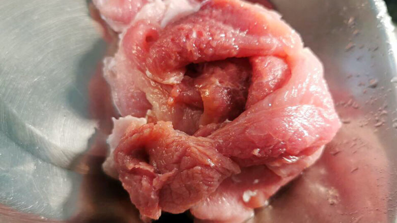 - 里脊肉经过锤肉锤敲打后,纤维断裂,肉质会更嫩。抓腌肉片时,要打开肉片,铺平开,才能吃进腌料,不然会影响肉片的味道,产生一片口味过重,另一片没有味道。