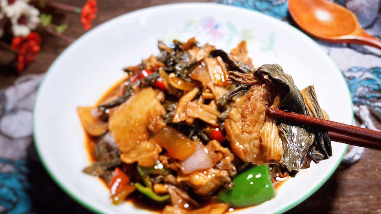 - 梅干菜本是带咸味的,放盐的时候尽量少一点