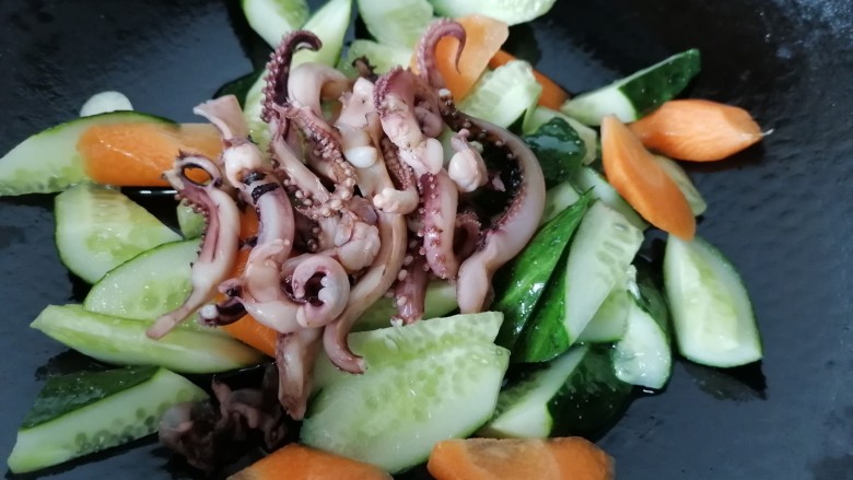 15. 拍上成品图,一道美味又营养的黄瓜炒鱿鱼就完成了。