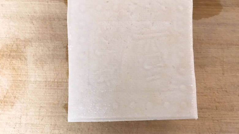 4. 用筷子轻轻地在豆腐对角线位置夹出一条缝,注意筷子不能插太进去,容易漏底