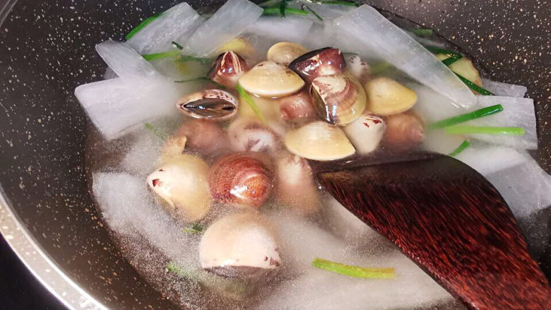 14. 大约3分钟左右,蛤蜊全部"开口笑"