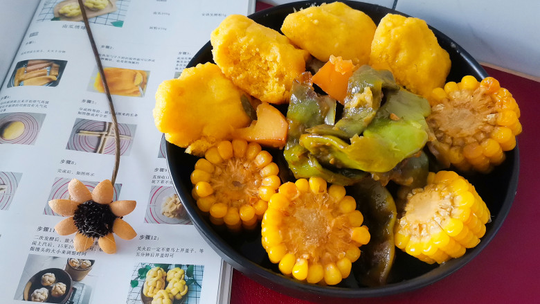 1. 盆中放白面,玉米面,酵母,温热水,和成面团醒发40分