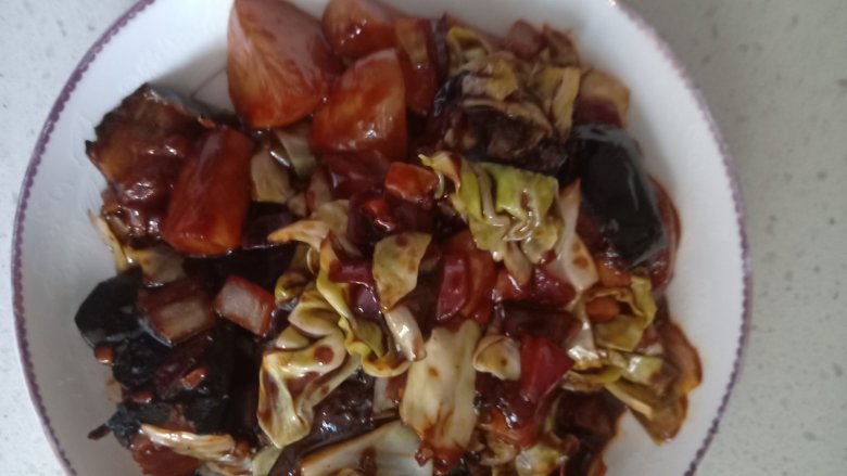 10. 放入洋白菜,土豆,茄子,倒入酱汁