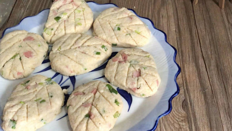 10. 取1小团捏成饼,再用手虎口处挤出叶子状