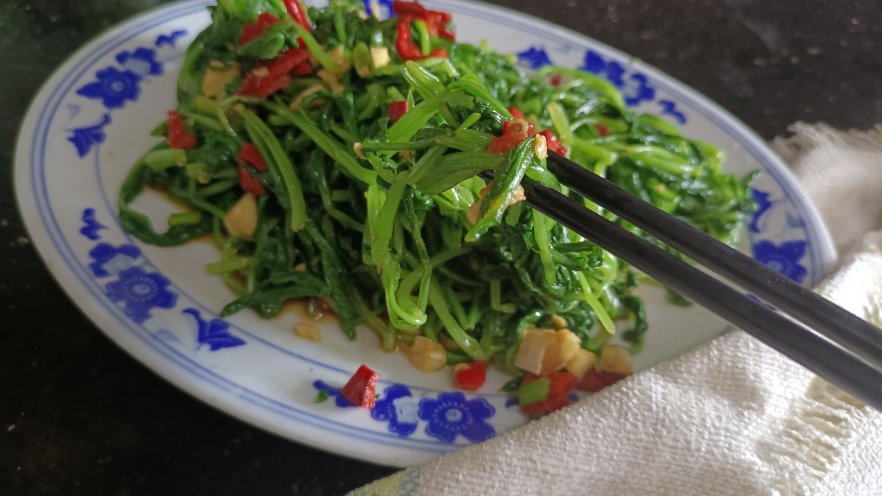 - 菜苗焯水时,把握火候。煮太软了了影响口味!