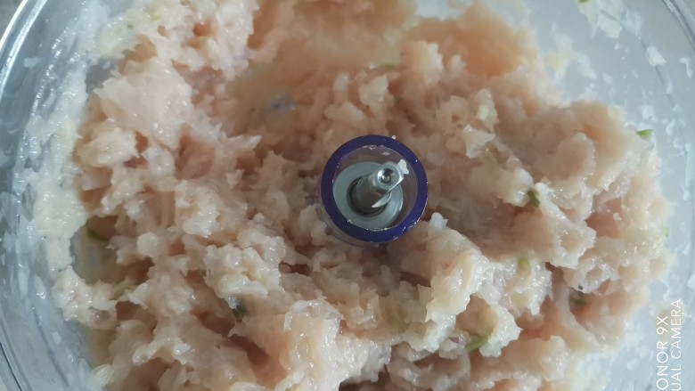 6. 把鸡肉也加入土豆泥里面,加入一勺蚝油