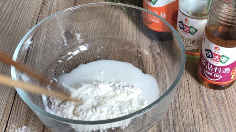 5. 淀粉和面粉混合均匀,加入点点盐和同等量的清水拌匀备用