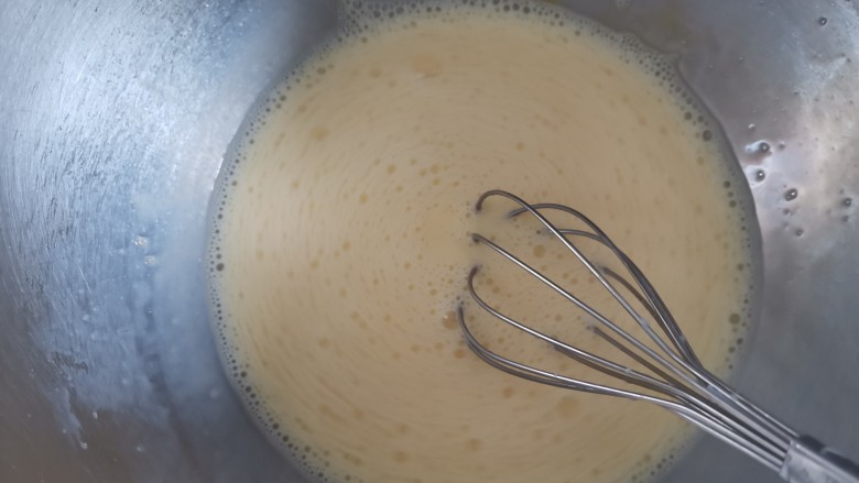 3. 鸡蛋打入盆里,加入白砂糖搅拌至融化